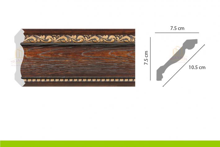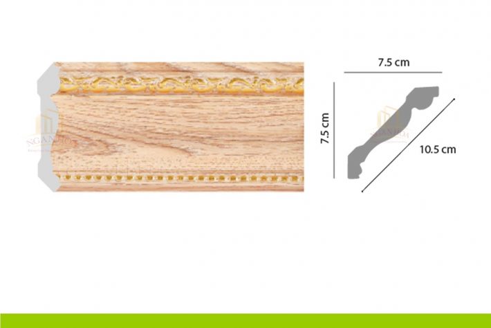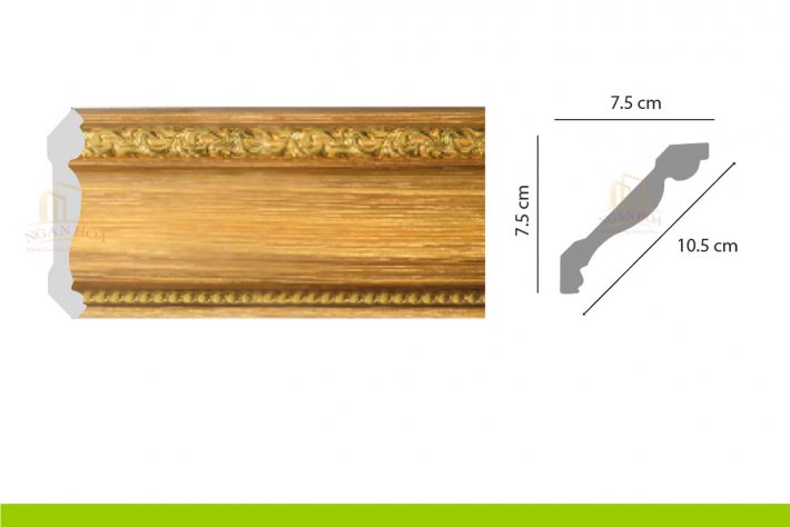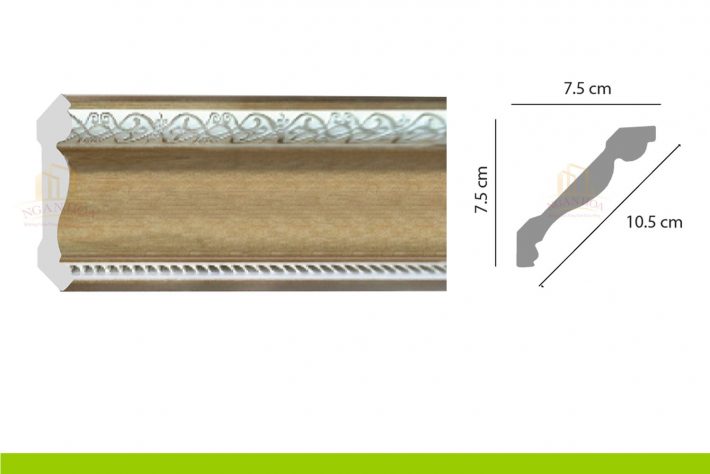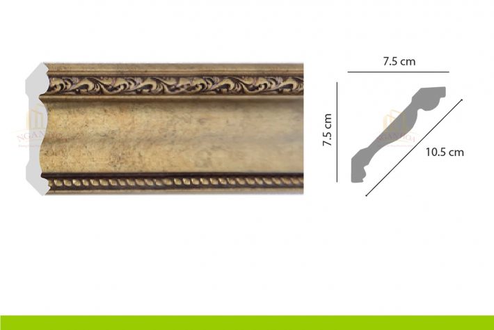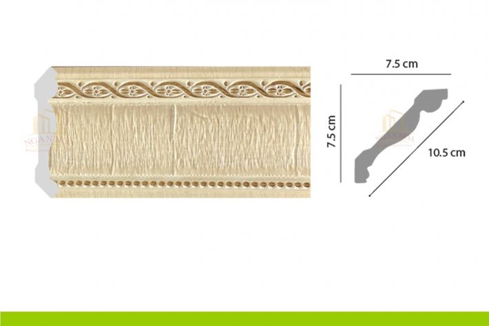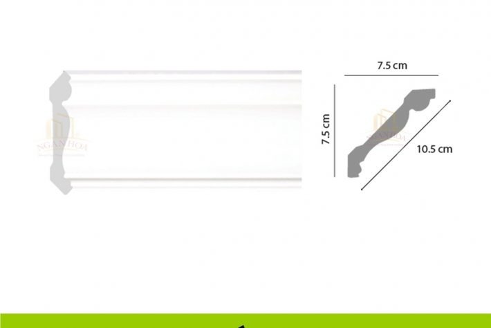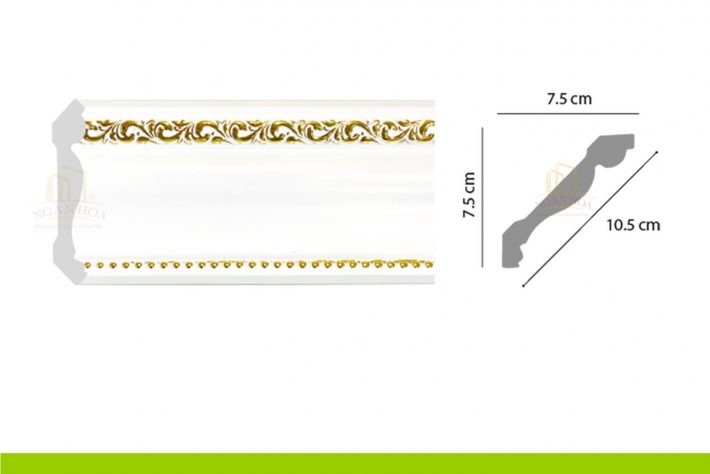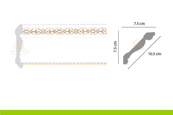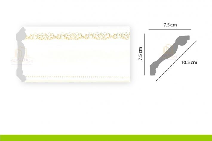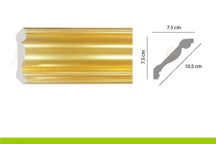 - Kích thước: Với kích thước 7.5 x 10.5 x 2m44, phào chỉ PCT 100 có kích thước lớn, tạo ra những đường viền ấn tượng, làm nổi bật trần nhà và tăng chiều cao cho không gian.