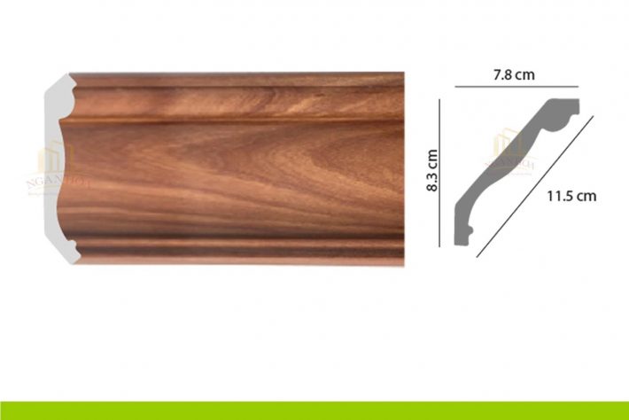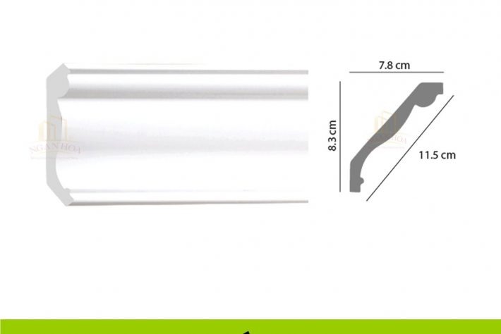 - Kích thước: Với kích thước 7.6 x 7.8 x 11.5 x 2m44, phào chỉ PCT 115 có kích thước lớn, tạo ra những đường viền ấn tượng, làm nổi bật trần nhà và tăng chiều cao cho không gian.
