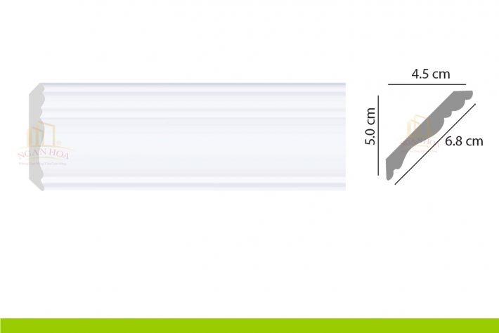 Với kích thước 5.0 x 4.5 x 6.8 x 2m44 (chiều cao x chiều rộng x độ dày x chiều dài), phào chỉ PCT 6001 phù hợp với nhiều loại trần nhà khác nhau. Sản phẩm có màu trắng tự nhiên, có thể dễ dàng sơn màu khác theo sở thích của gia chủ.