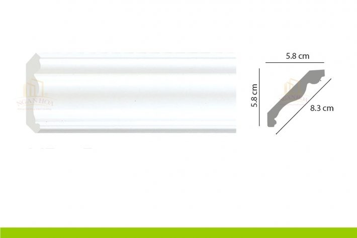 - Kích thước: Với kích thước 5.8 x 8.3 x 2m44, phào chỉ PCT 900 có kích thước lớn, tạo ra những đường viền ấn tượng, làm nổi bật trần nhà và tăng chiều cao cho không gian.