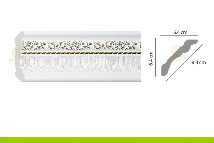 - Kích thước: Với kích thước 6.4 x 8.8 x 2m44, phào chỉ PCT 9313 có kích thước lớn, tạo ra những đường viền ấn tượng, làm nổi bật trần nhà và tăng chiều cao cho không gian.