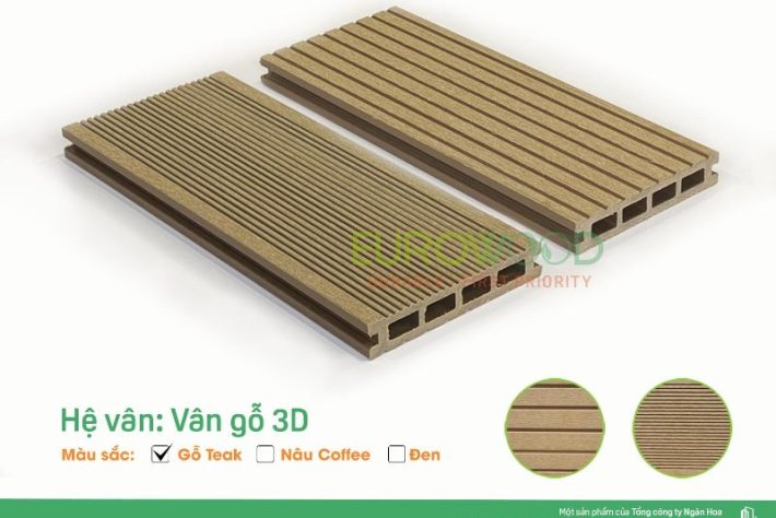 - Chất liệu: Nhựa PVC cao cấp, kết hợp với bột gỗ tự nhiên, tạo nên sản phẩm bền bỉ, chịu nước và chống mối mọt.