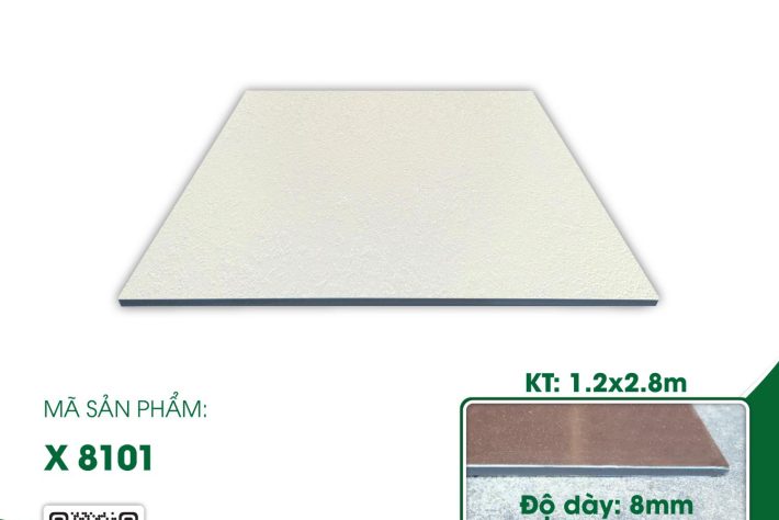 Dòng sản phẩm X 8101 mang đến sự lựa chọn đa dạng từ các tông màu ấm áp mô phỏng gỗ tự nhiên cho đến các họa tiết đá cẩm thạch sang trọng, hiện đại. Bề mặt tấm ốp được xử lý tinh xảo, tạo cảm giác chân thực như vật liệu thật, giúp kiến tạo nên những không gian nội thất cao cấp và độc đáo.