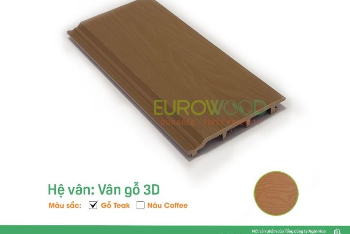 Tấm ốp EU 146 T là sản phẩm cao cấp được sản xuất trên dây chuyền công nghệ hiện đại, đáp ứng các tiêu chuẩn khắt khe về chất lượng. Với kích thước 146 x … x … (mm), tấm ốp được làm từ chất liệu gỗ nhựa composite (WPC) cao cấp, sở hữu những đặc tính nổi bật sau: