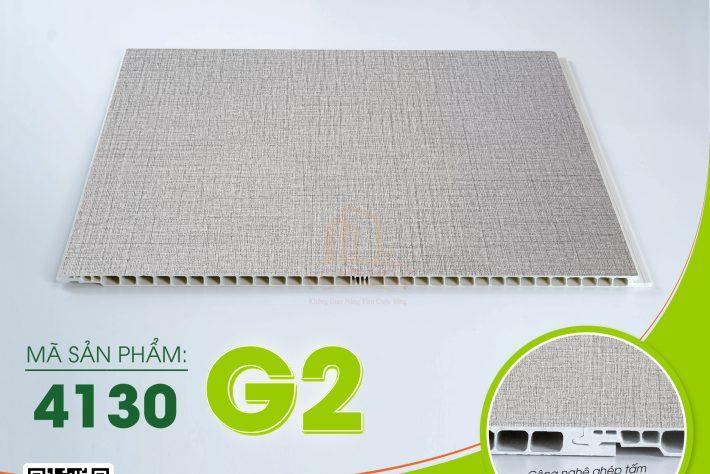 Tấm ốp PVC G2 – 4130 được làm từ nhựa PVC nguyên sinh chất lượng cao, đảm bảo khả năng chống ẩm mốc, chống mối mọt và chịu lực tốt. Nhờ vậy, sản phẩm thích hợp cho các môi trường có độ ẩm cao và tác động cơ học thường xuyên, như phòng bếp, phòng tắm, hay các công trình công cộng. Đặc tính nhựa PVC giúp việc thi công trở nên nhanh chóng, dễ dàng mà vẫn giữ được độ cứng cáp và ổn định trong quá trình sử dụng lâu dài.